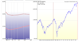 Watch out! The curve is moving toward a warning of recession. Yields are inverted between the 7-yr and 10-yr as well as the 20-yr and 30-yr. The downward slope that started at the long end now includes the middle of the curve. Talking heads call this mid-section "the belly of the curve."